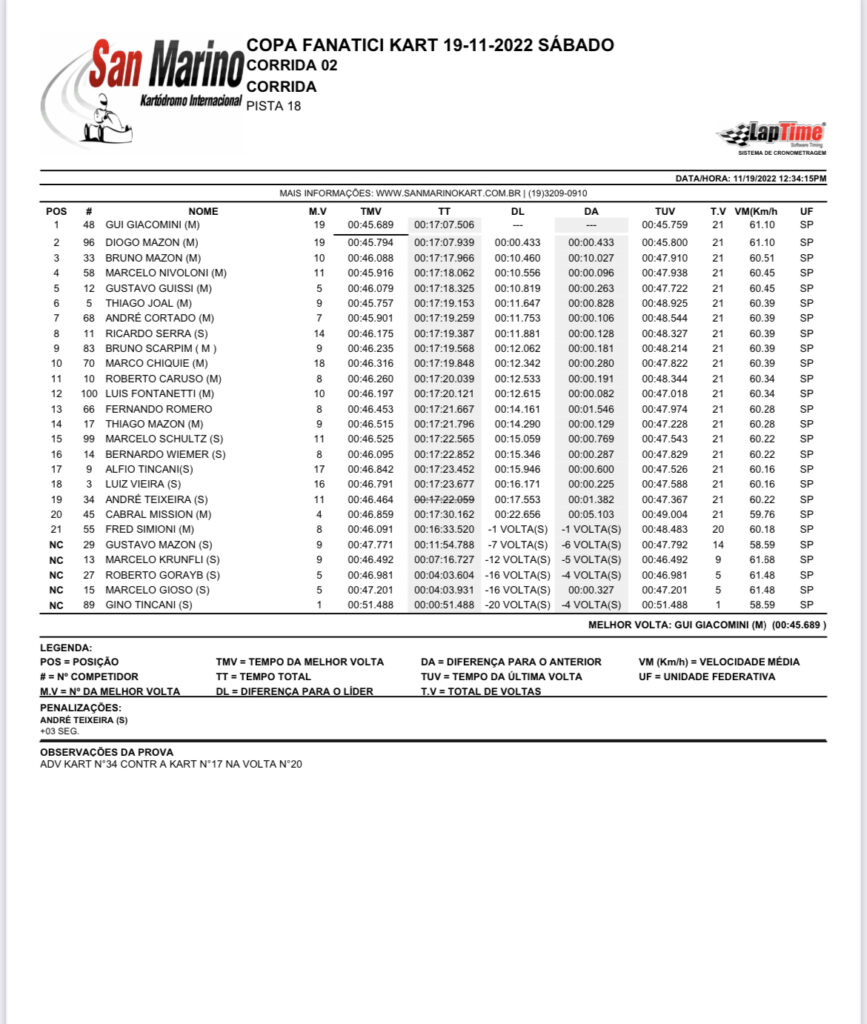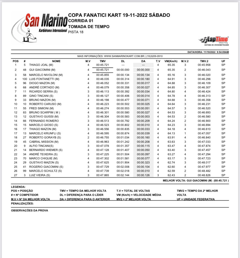 FK4T – Classificação após a 11ª etapa de 2022